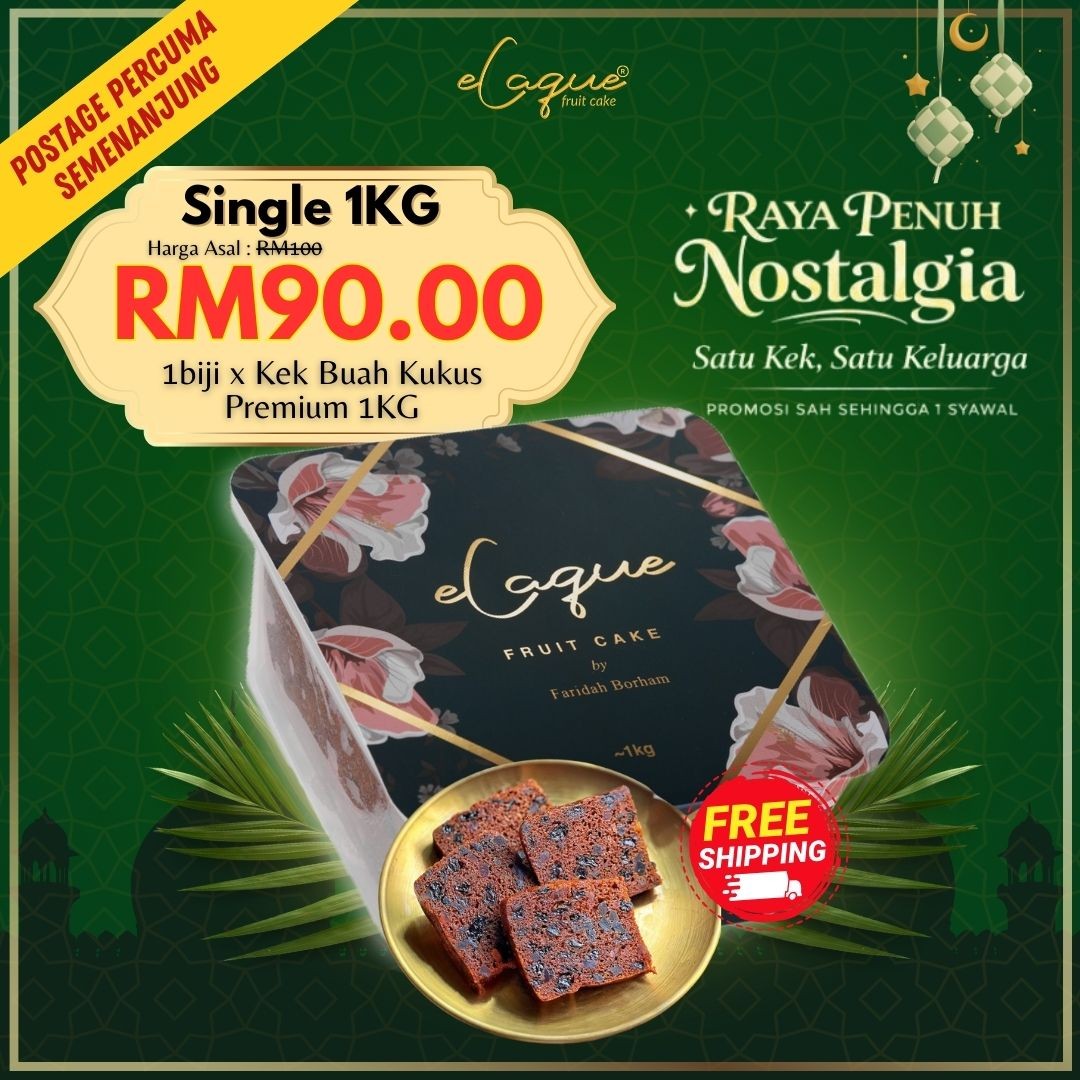 100% mentega tulen, Tepung Gandum Penuh Berprotein Tinggi, Gula pasir, Buah-buahan Campuran Bermutu Tinggi dan Telur Gred A