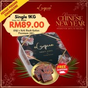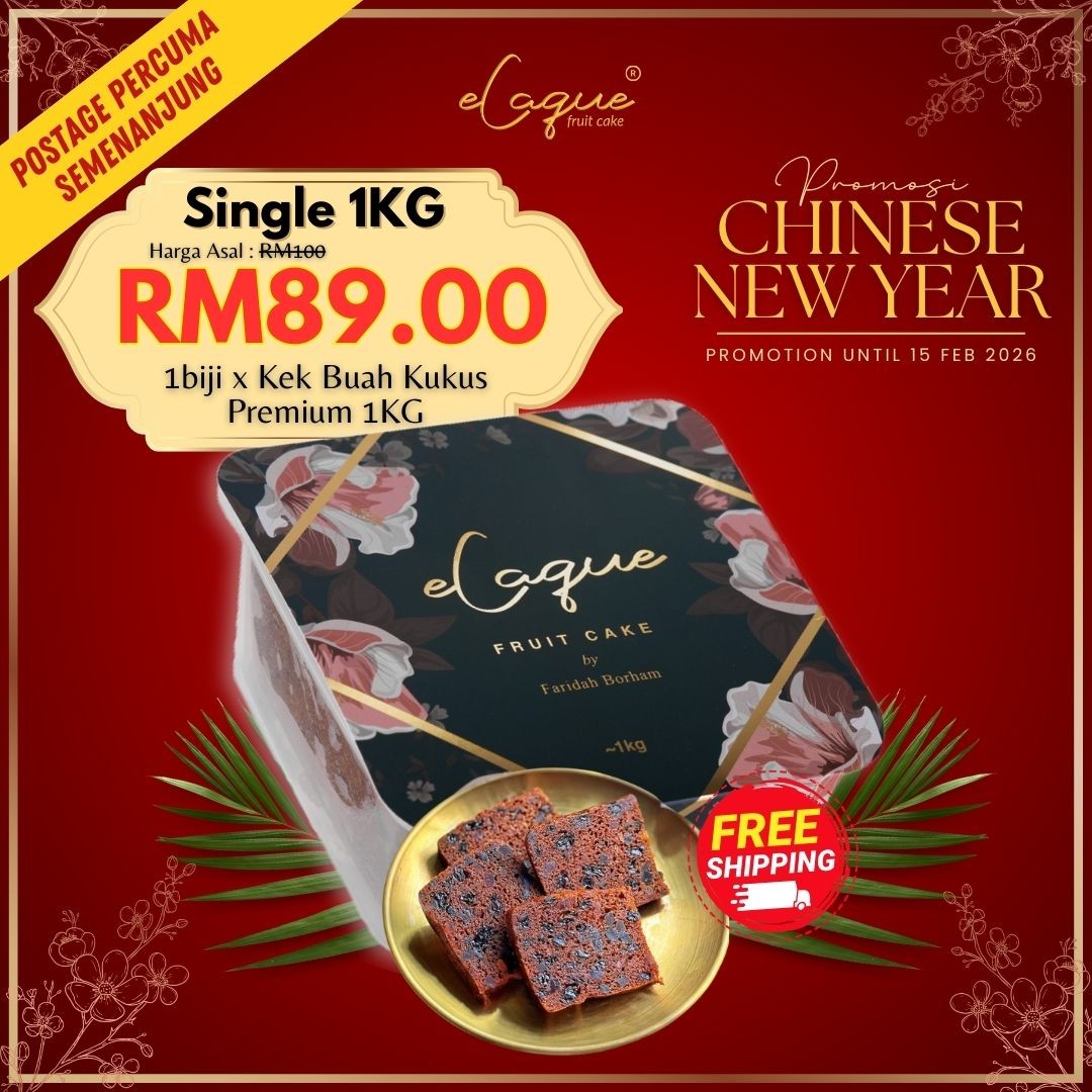 100% mentega tulen, Tepung Gandum Penuh Berprotein Tinggi, Gula pasir, Buah-buahan Campuran Bermutu Tinggi dan Telur Gred A
